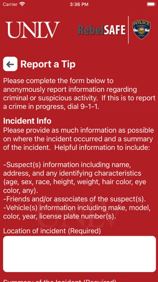 - Report a Tip: Report a safety/security concern directly to UNLV security.