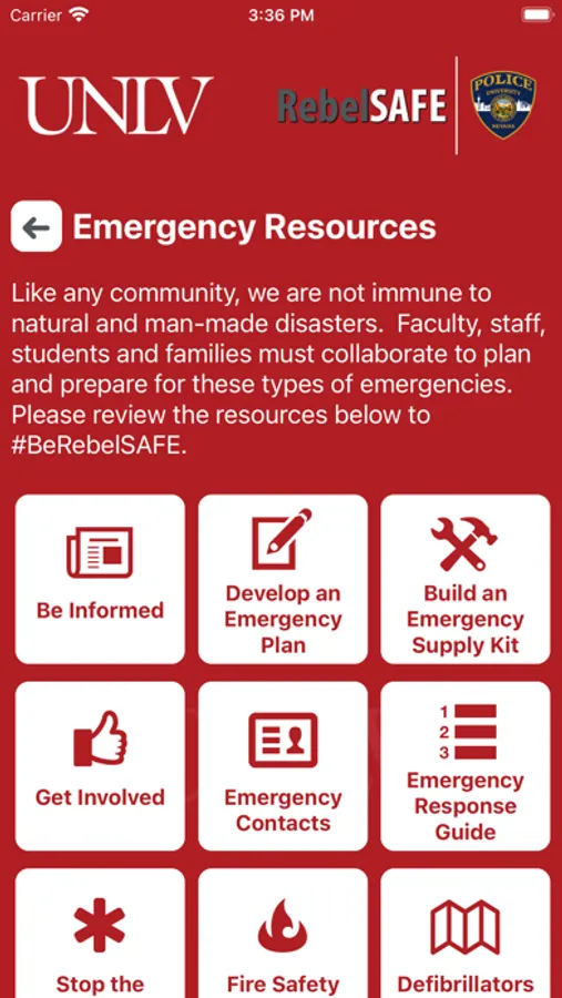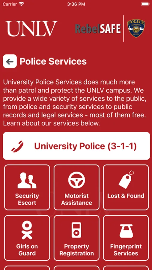 RebelSAFE is the official safety app of University of Nevada, Las Vegas. It is the only app that integrates with UNLV's safety and security systems. Police Services has worked to develop a unique app that provides students, faculty and staff with added safety on the University of Nevada, Las Vegas campus. The app will send you important safety alerts and provide instant access to campus safety resources.