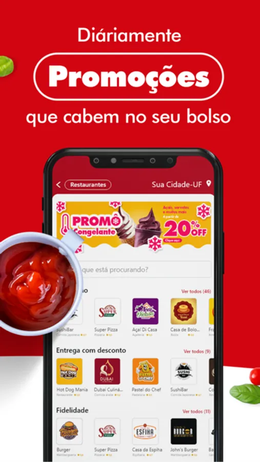 Seus restaurantes, lanchonetes, padarias, mercados, farmácias, disque gás, disque água e depósito de bebidas favoritos no seu bolso, a distância de um toque.