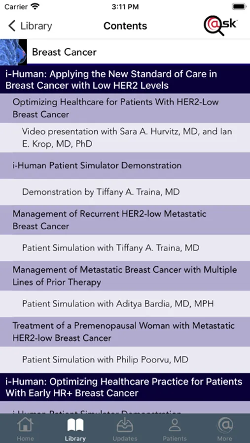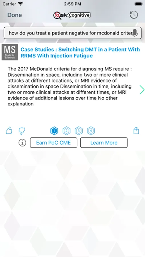 • Ask AI/Cognitive search of vast medical database (can earn free CME credits by asking questions too)