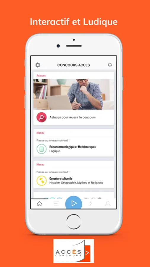 L'application mobile officielle du Concours ACCES permet de s'entraîner aux épreuves de raisonnement logique et mathématiques, ouverture culturelle et langues vivantes. Ses fonctions offrent la possibilité aux utilisateurs de se tester et de s'entraîner dans les conditions réelles de l'épreuve.