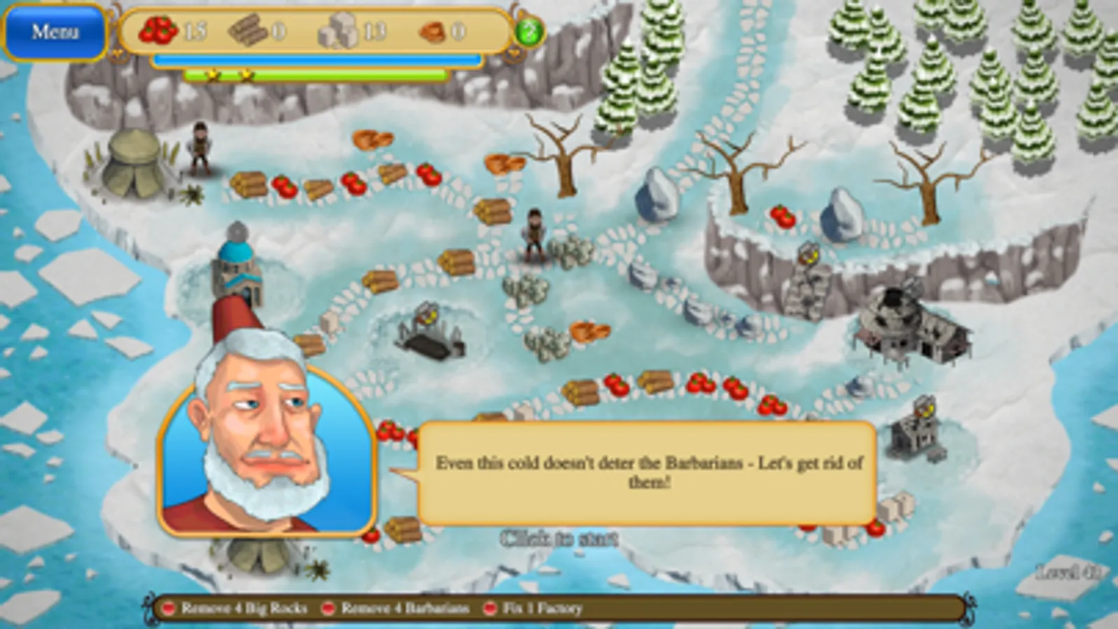 The Counsellor just arrived with bad news! The barbarians are pillaging and destroying our villages! There is an urgent demand to fix the damages and restore peace in the reign! Will you be up to the task and help the Queen?