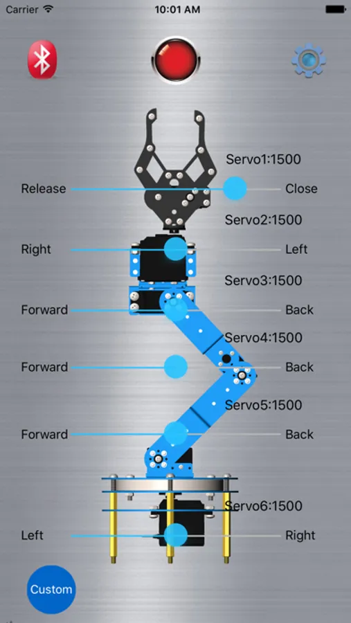This app applies to iphone and iPad. You can make robotic arm swing up and down and grab something and do other actions, the current version is V1.6.