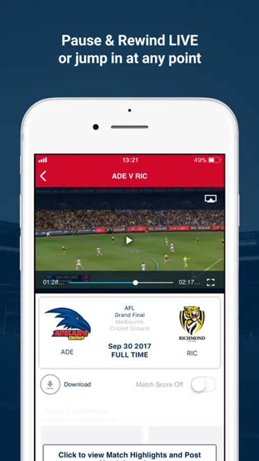 Watch AFL is the official way to watch every AFL match LIVE & on demand outside Australia.