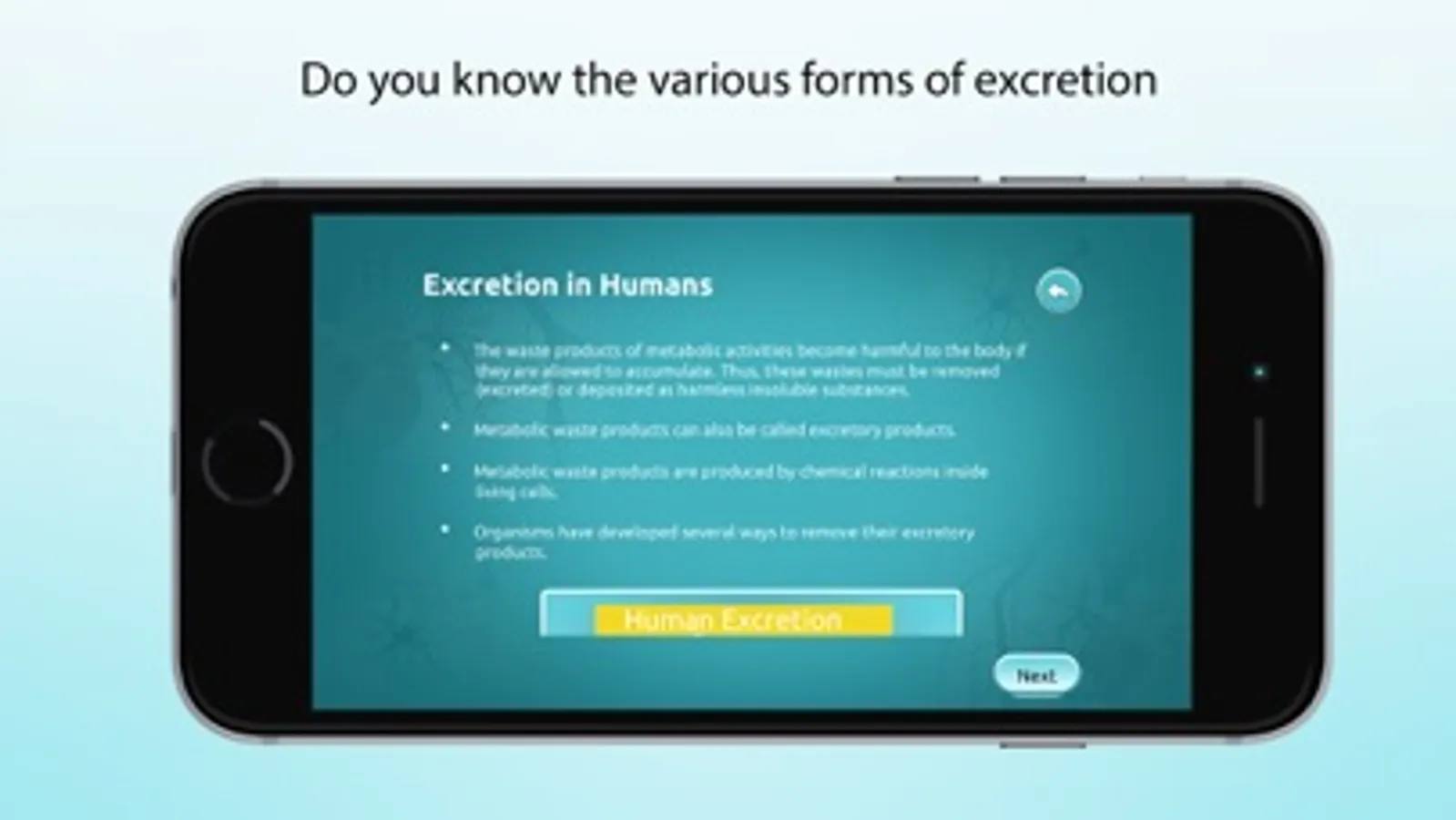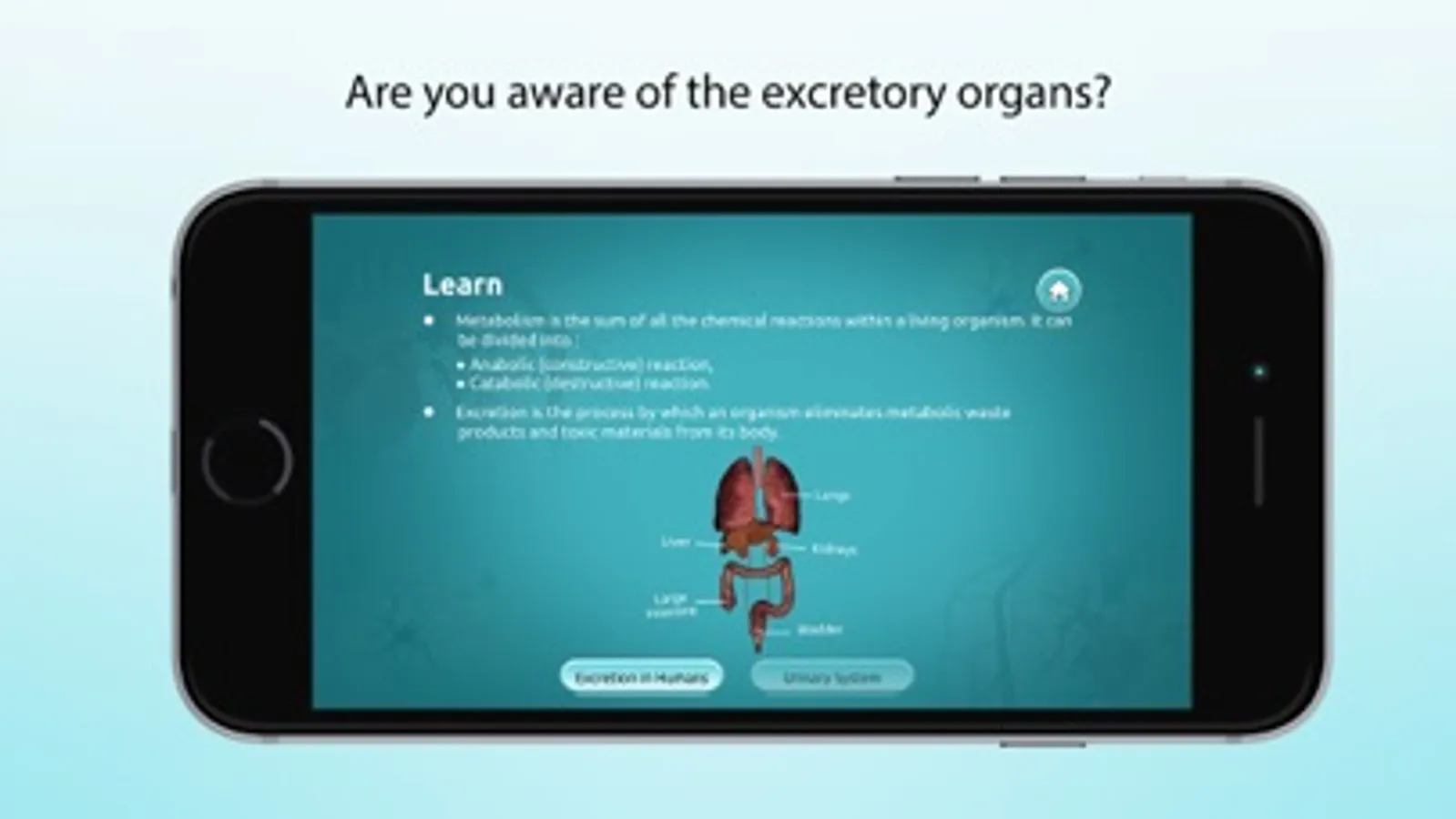 This educational application helps students understand and learn about the human excretion, kidney dialysis, urinary system, metabolism, excretory system, excretory organs in an easy and engrossing way.