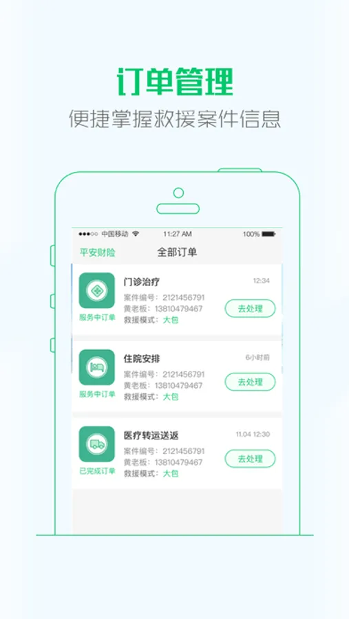 【监管机构】:监管机构可以收到实时的案件消息提醒,随时了解最新的救援服务介绍,支持分类管理每一类案件,实时查看案件进度,同时对进行的案件都能全节点监控。