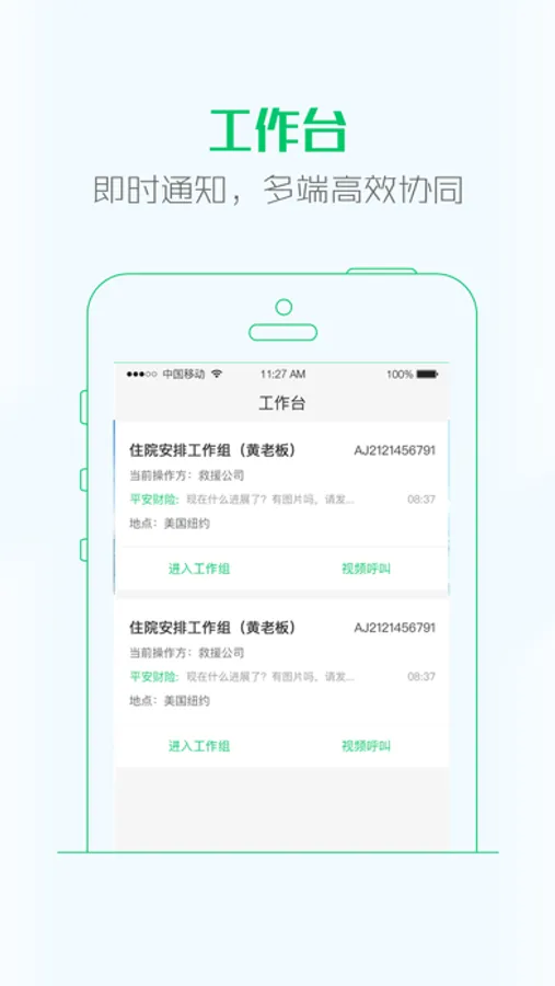 【视频对话】:支持各个角色实时视频及图文互动。同时在交流的过程中能看到案件详情,在救援活动中能及时和关联的更方面进行沟通,保证救援任务的进度。
