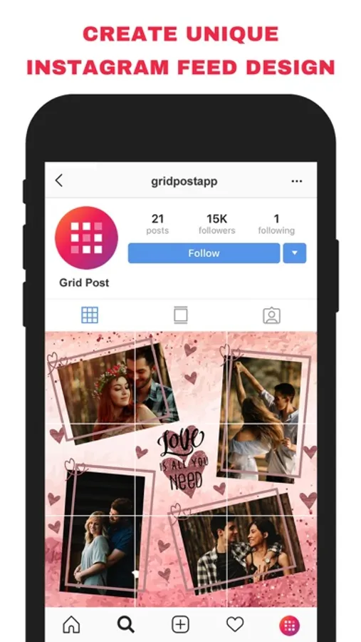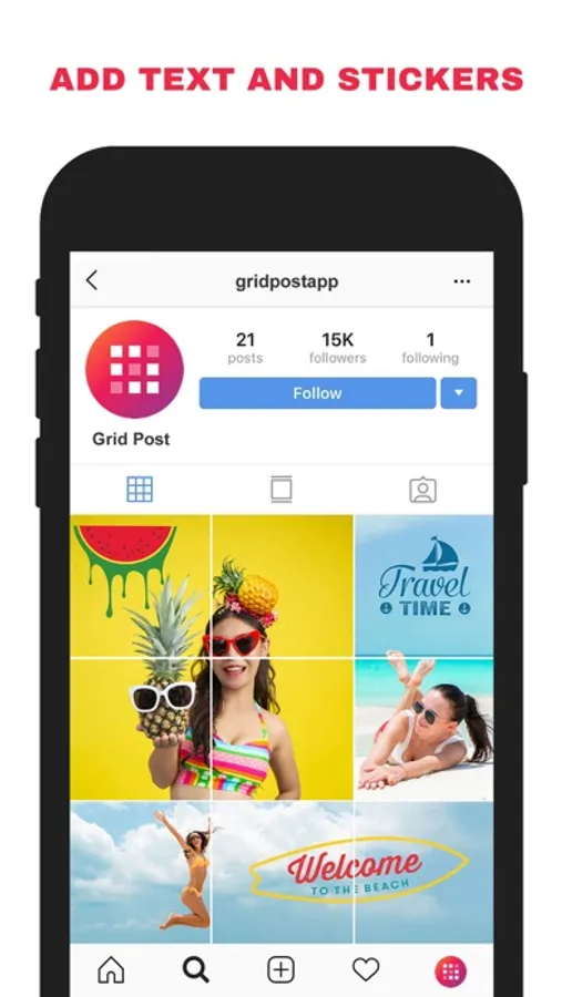 Grid Post app allows you to split(crop) your large rectangular photos into a number of square pics and upload them to Instagram and impress your friends and your profile page visitors!