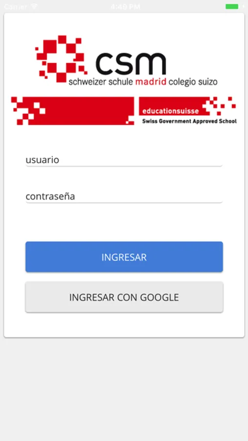 Aplicación móvil para acceder al sistema Phidias Académico del Colegio Suizo de Madrid