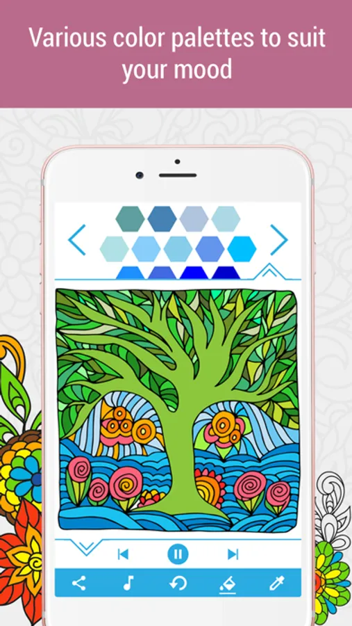 - Subscription owners can color all images, use all palettes and listen to all music themes available now and in future updates.