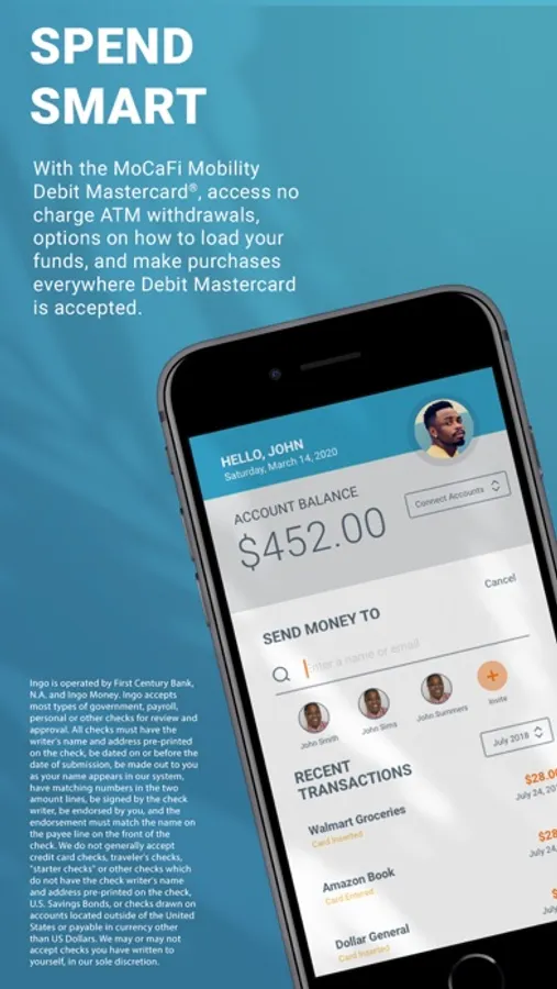 When you open a MoCaFi account, your account number and routing number are immediately available for direct depositing approved payroll and government benefits checks. Use the MoCaFi app to photo deposit approved checks using the Ingo™ Money Service integration.