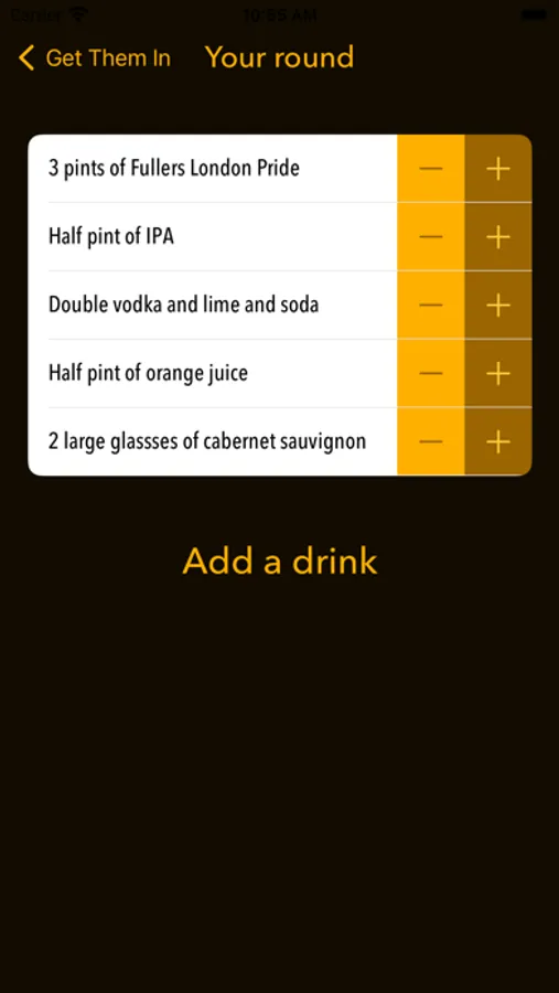 Easily remember a large round of drinks. Beer, cider, wine, spirits, cocktails and soft drinks… quickly and easily make a note of the round. "Get Them In" knows your favourite drinks, and what's popular in your pub.