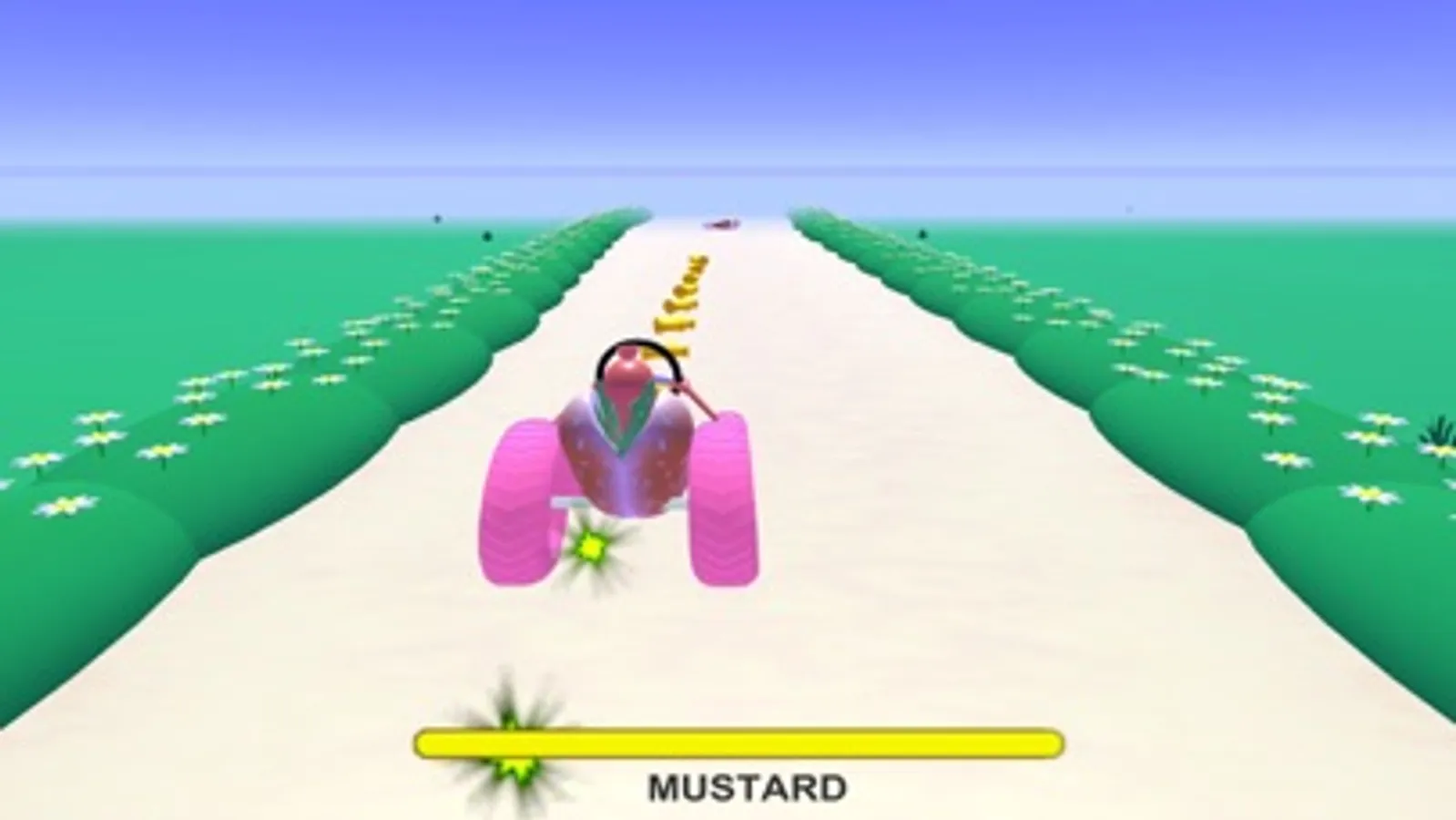 Easy enough for even Dad to play. Twist and turn with Hot Dog Racer, a car game for boys and girls. Rack up mustard to boost the size of your wheels. Deflate by knocking against the sides of the road. You’ll hear a familiar sound as your car tire size is reduced.