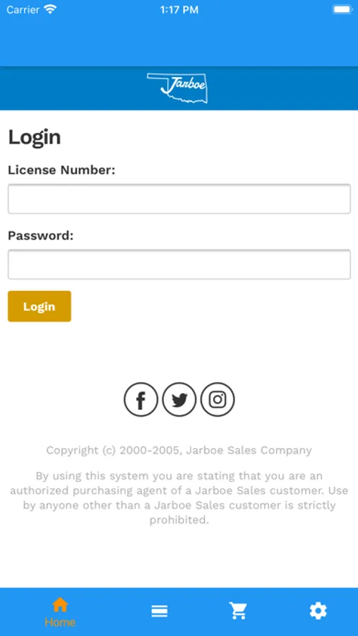 This app may only be used by customers of Jarboe Sales. In accordance with Oklahoma law, Jarboe Sales does not sell directly to the public.