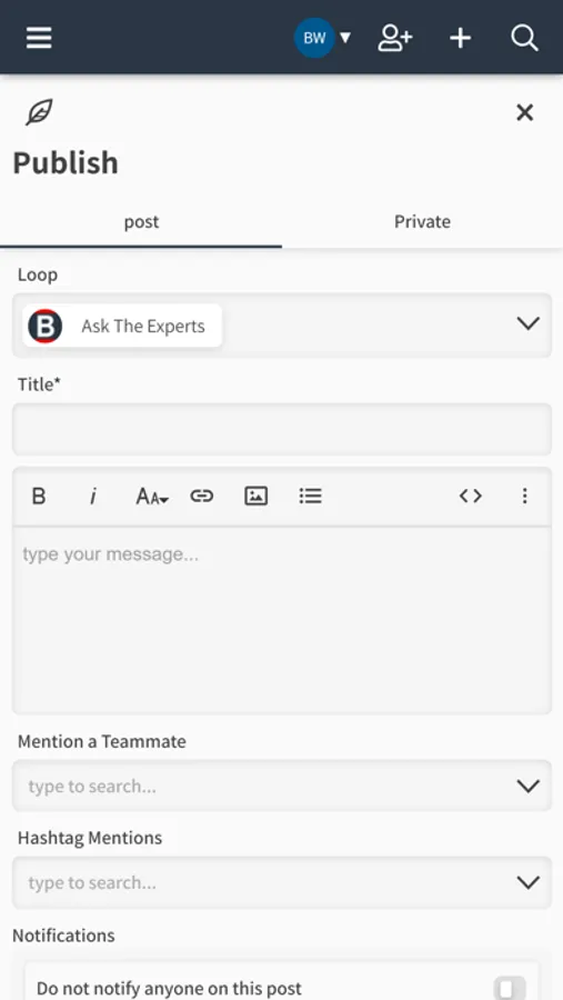 The Bellator Agent App replaces internal emailing, shared drives, and intranets with a more intuitive, all-in-one communications app accessible via desktop and mobile. Users join a loop or room dedicated to a specific project or job function, start conversations, and create or consume valuable working knowledge. By creating more structure around messaging, Bellator Agent App simplifies best practice and information sharing, reduces redundant transactional messaging, and fosters a unique team culture that promotes productivity and teamwork.Bug fix