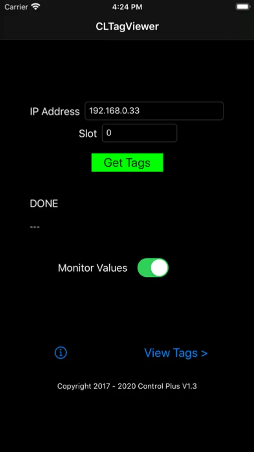 Once it has finished reading all the templates you can check the "Monitor Values" switch and it will then read and display the values of the tags currently visible.