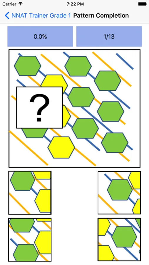 Updated for 2019! Train for gifted and talented testing. This app is designed to increase reasoning and problem solving skills for first grade students. Specifically the exercises within are for mastering the NNAT2 Naglieri Nonverbal Ability Test for First Grade.