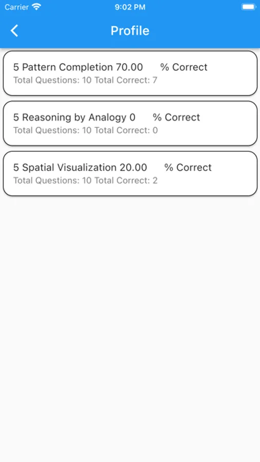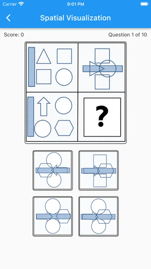 We present a quiz of 8-15 questions from a bank of questions stored in the app. You get a score and the number right/wrong as well as indication of correct answers then tapped.