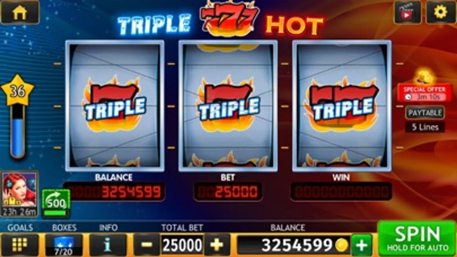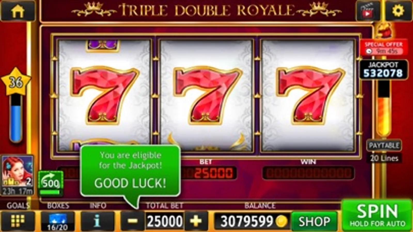 BIG WINS don’t get any bigger than in the Wild Triple Slots 777 casino. With every new casino slot machine you spin, you have a chance to DOUBLE and TRIPLE your win and to hit the PROGRESSIVE JACKPOT! Tap Slots games are made with proven math models, providing the most authentic online casino slots experience that’s filled with jackpot slots!