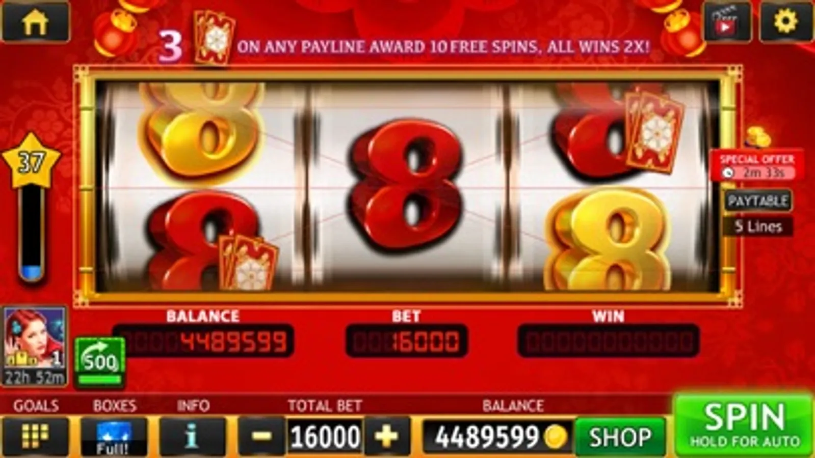 Our slots games have large displays for coins balance and wins, easy to read and easy to play. Each game shows its pay rules and paytable and it’s easy to figure out how the slots payout. When you win big, you’ll know it, with BIG WINS, SUPER BIG WINS and even MEGA BIG WINS -- real jackpots slots! We also offer amazing 5x and 10x pay slots that are sure to thrill.
