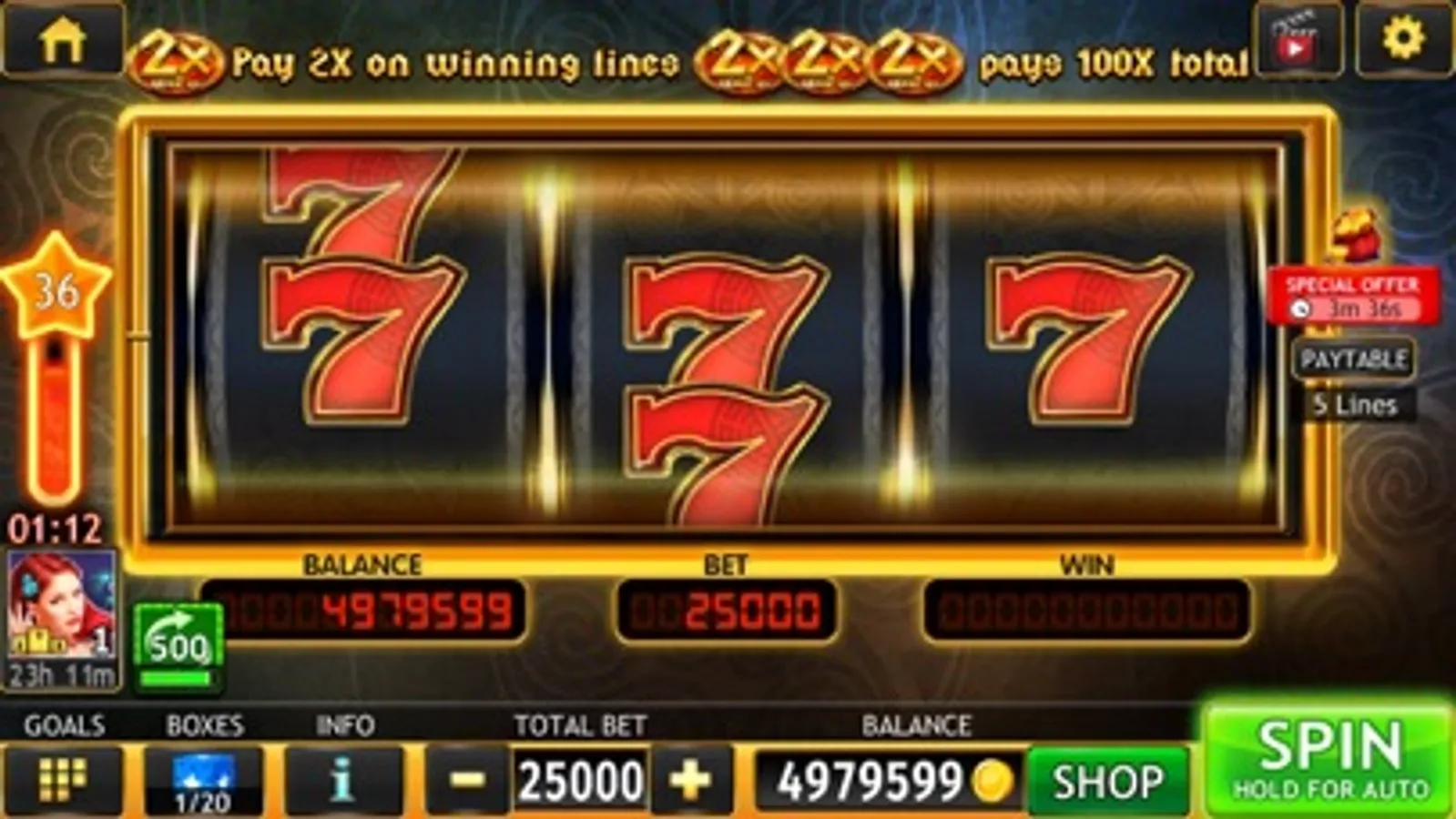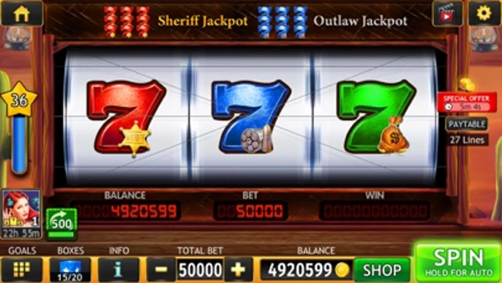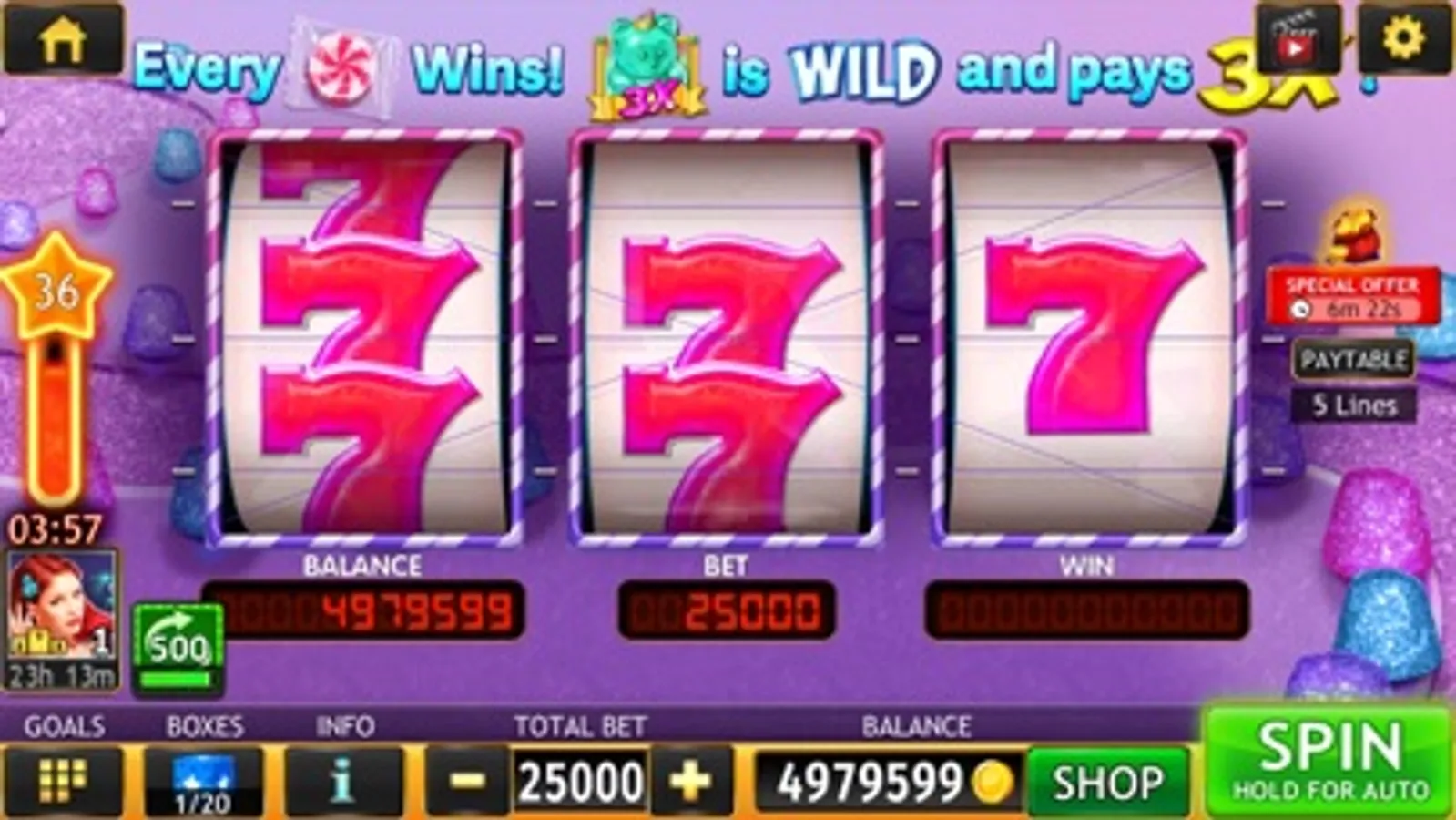 Wild Triple Slots simulates the mechanical 3-reel slots games with its typical red 7s and BAR symbols, from the classical one-armed bandits to modern multi-line games. Enjoy the classic sights and sounds, but also all the modern slots with all the lights, bells and whistles and special features such as Free Spins, Multiplier Wilds and RESPINS! With some games you can win the jackpot and win a million coins with a bet of only 500 coins!