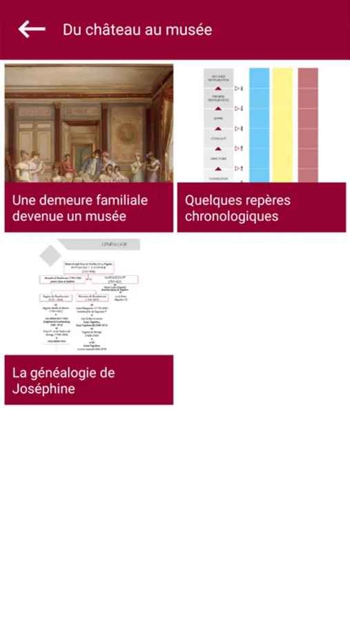 Découvrez les richesses du musée national du château de Malmaison avec l’application officielle, « Château de Malmaison ». Elle vous propose une approche thématique et des focus sur des points d’intérêt à la différence d’un parcours de visite classique. Vous y trouverez les œuvres incontournables du musée, l’histoire du château et de ses prestigieux propriétaires, Joséphine et Bonaparte, la diversité des collections et bien plus encore.
