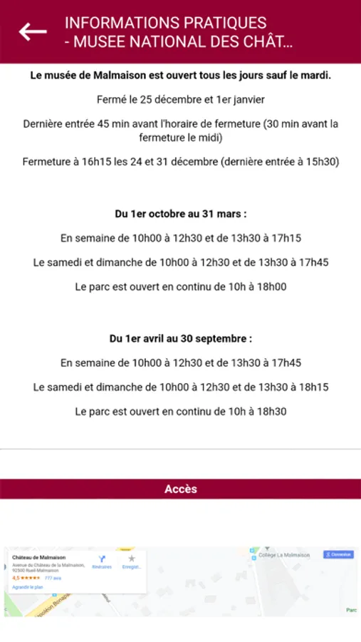 1 - Les informations pratiques : accès, horaires, tarifs et liens vers le site du musée