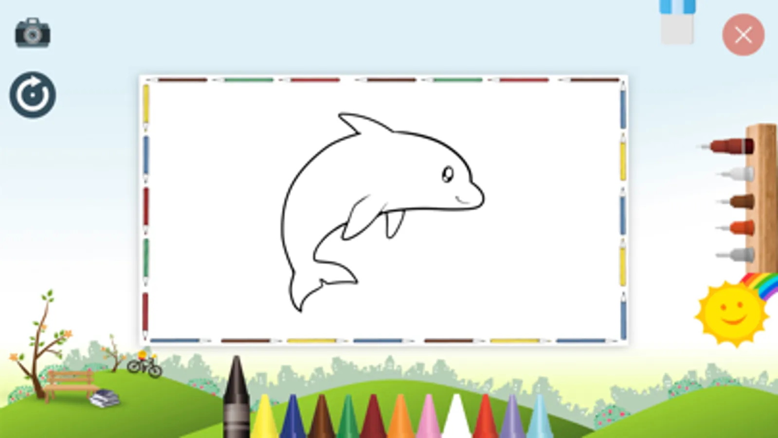 3. Drawing : This section has two parts. First, free hand drawing and color filling and second, select any predefined shape and feel color. It also provides option to take photo of drawing and share it.