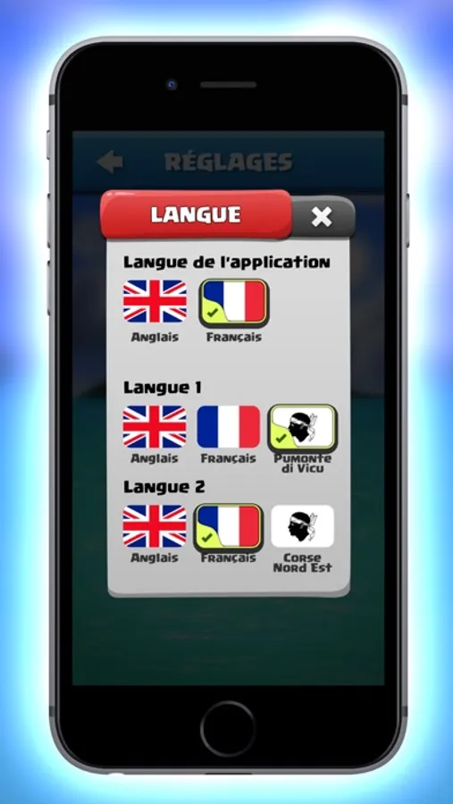 La version 1.0 inclut le corse, le français et l'anglais.