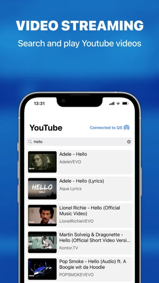 QS Media Player app only works with QS SMART scoreboard. The app connects to the QS SMART Scoreboard and acts as remote control app.