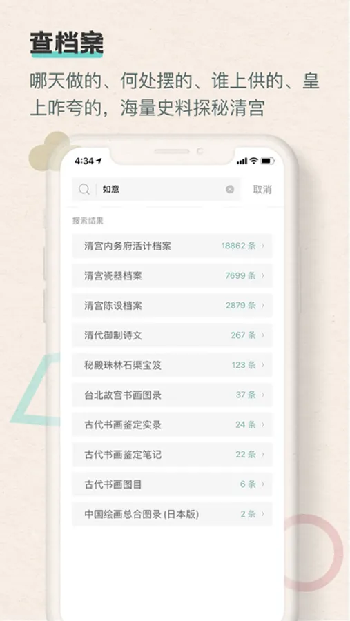 【档案文献】:档案-重要清宫原始卷宗,数据化检索清宫完整收藏、陈设及造办处制造纪录,逐件溯源皇家宝藏。文献-海量权威中国古代书画及古器物的鉴定汇编,全方位检索艺术品考证细节。