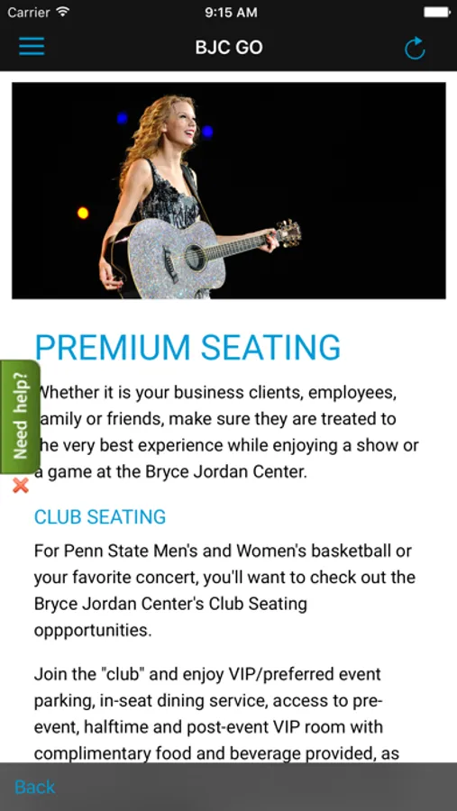 The Official App of the Bryce Jordan Center at Penn State offers guest a convenient way to see upcoming events, purchase tickets, plan your visit, and contact us. Seating charts are available, along with parking information, arena maps, and photos of recent events. Insiders can find a quick link to login to their account. Once you are ready to buy you will be directed to Ticketmaster.com or the Ticketmaster App if you have it installed in order to complete your purchase. You can also allow push notifications in order to be notified of special events.