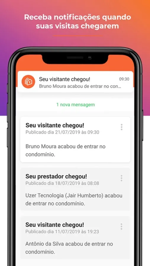 ‣ Receber avisos quando os visitantes ou prestadores de serviço chegarem;