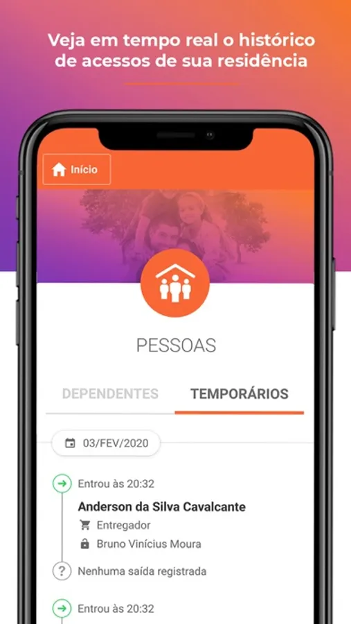 ‣ Função de gestão de pessoas, onde é possível ver os históricos de acessos de seus dependentes e o histórico de acesso de seus visitantes