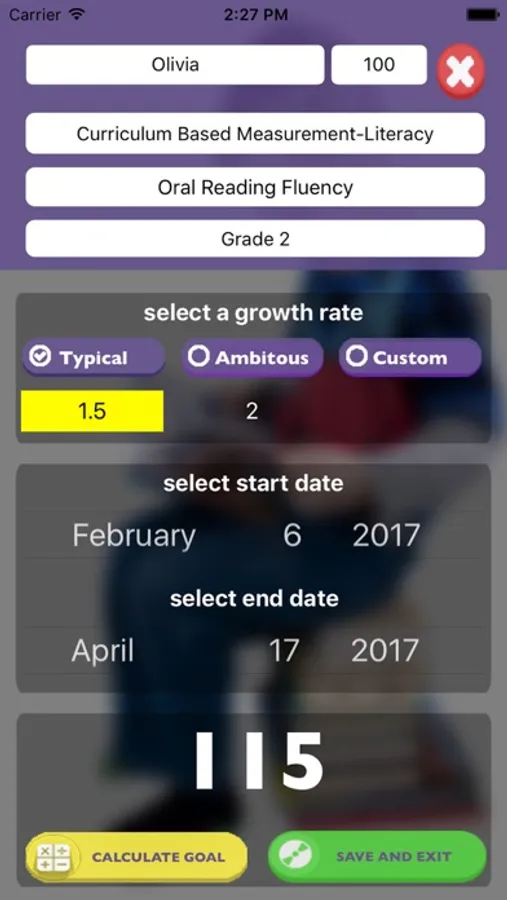 That’s all! Now “save and exit” and immediately you will see the student's goal on the main page with number of weeks and test name.