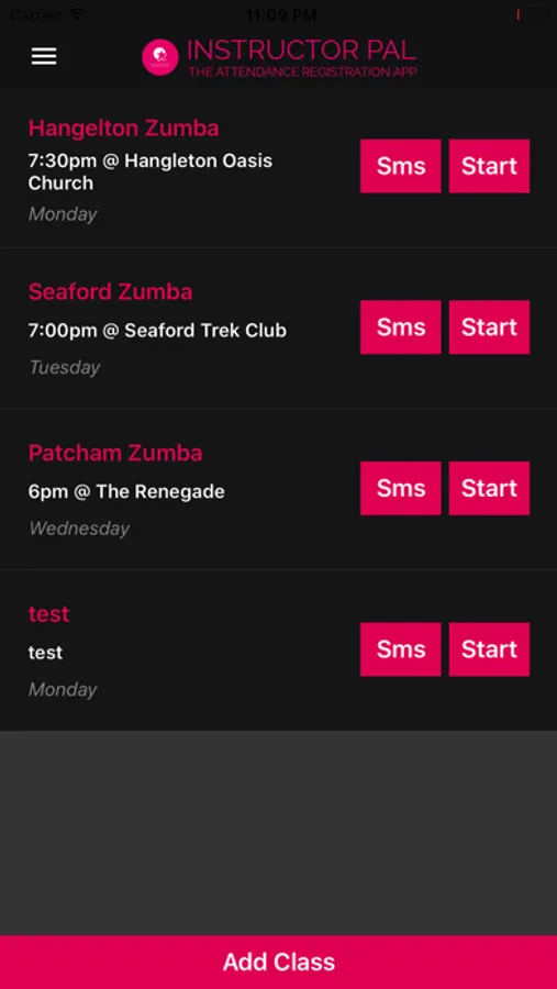 - The app will automatically remind attendees of classes, lets people check-in and pay online. Keeping your attendees details all in one place, you can remind everyone in that class on the day by SMS.