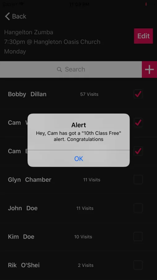 You can also create custom alerts, to be made aware when individuals that attend your class hit specific milestones in their attendance record. for example you can be alerted when an individual has made it to your class the tenth time that month or that year, or the second time that week.