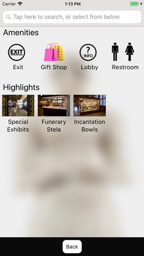 -Interactive Map: with the interactive map, easily find out practical information like the location of restrooms and exits simply by tapping: “Where is the…?”. The location-aware map will show you your location and where you want to go. Locate the artifacts you’re interested in and add them to your ‘Likes’ page to review and explore later!