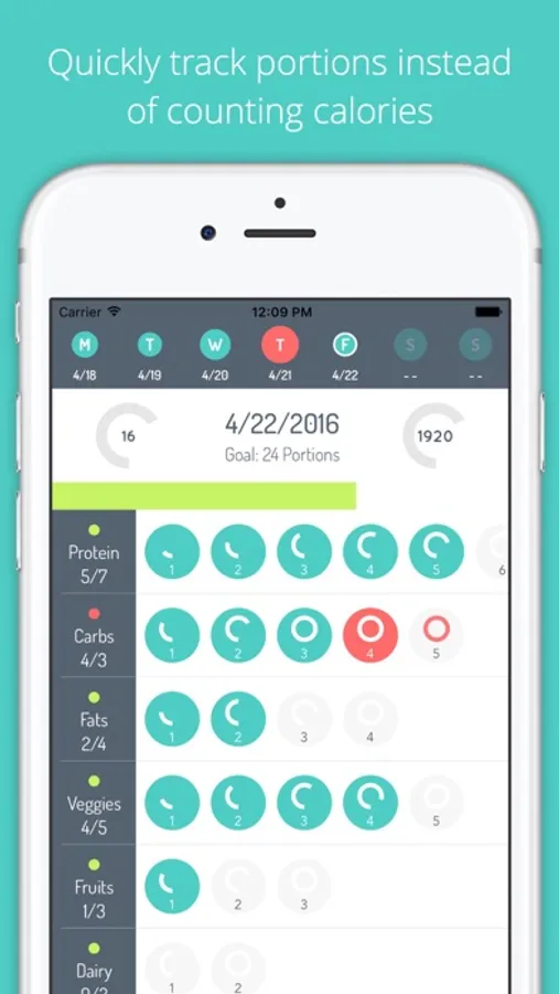 Portion Tracker is a simplistic approach that is focused more on consistency rather than accuracy as it only takes about 20 seconds to track a whole meal. However, those 20 seconds will give you a good idea of how much you're eating throughout the day so you can adjust accordingly.