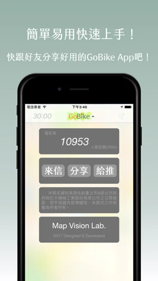 特別感謝 高雄市政府、高雄捷運公司、臺北、新北、桃園、新竹、彰化、台南、台中縣市政府提供共享單車開放資料