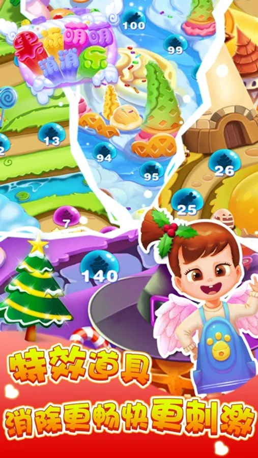 *富有挑战性的闯关地图、梦幻甜美的糖果风格、丰富趣味的音效、
