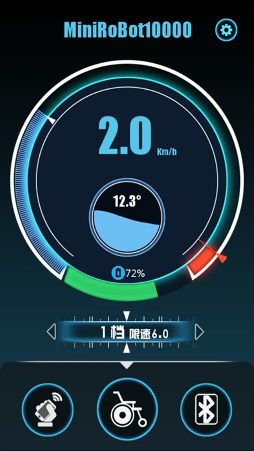 This software is a smart wheelchair APP You can read through the APP to the details of the wheelchair, such as the left and right wheel speed, slope, power, the remaining mileage and so on. You can also use the APP to set the parameters of the wheelchair, such as setting the gear, setting the steering sensitivity and setting the driving sensitivity. You can also use the Bluetooth remote control function to control the movement of the wheelchair.