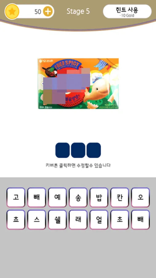 상자과자의 이름을 맞추는 퀴즈입니다.