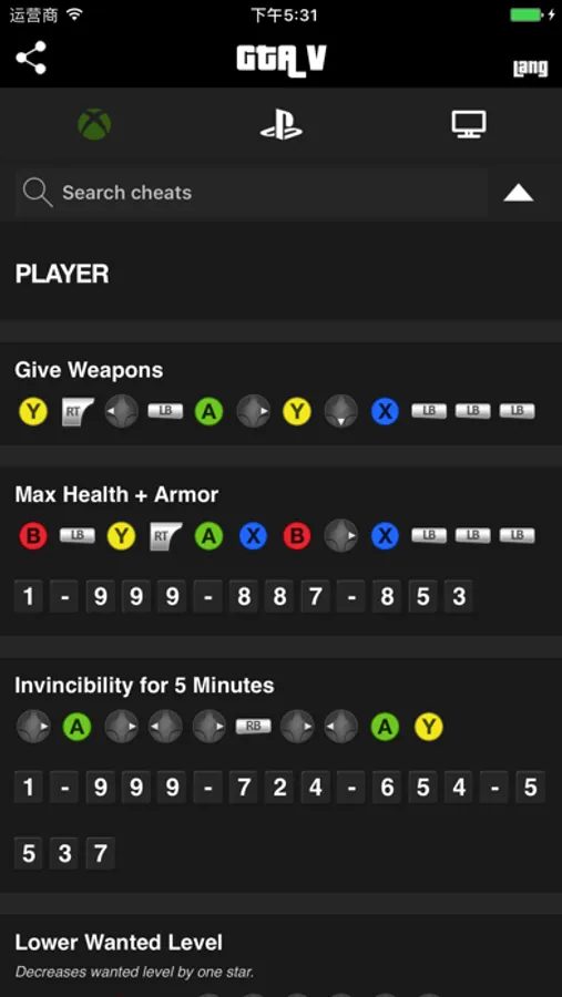 This app provides every cheat code for Grand Theft Auto 5 on all consoles/platforms.