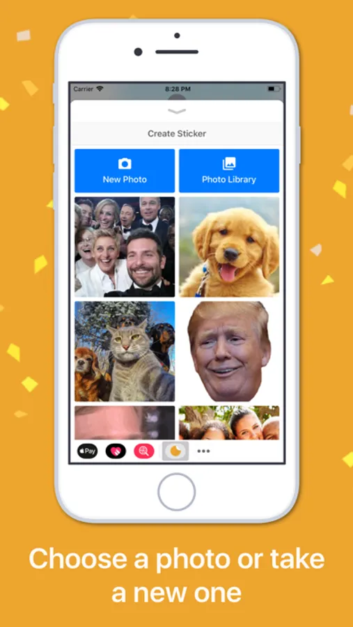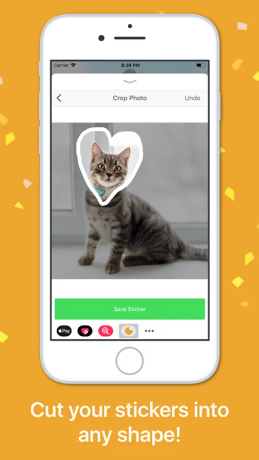 Choose a photo from your library or take a new one, before tracing the shape of your sticker. Borders and shadows are added automatically for that professional realistic sticker look!