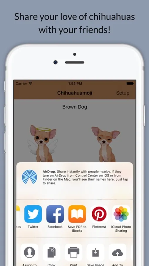 - You can open the Chihuahuamoji app and simply share the emoji from there by touching one.