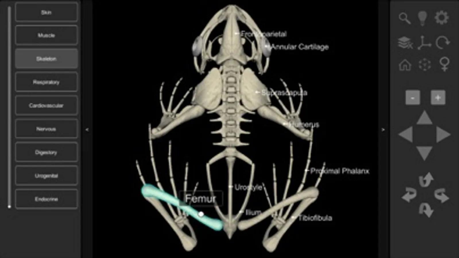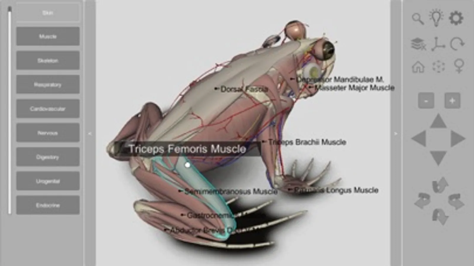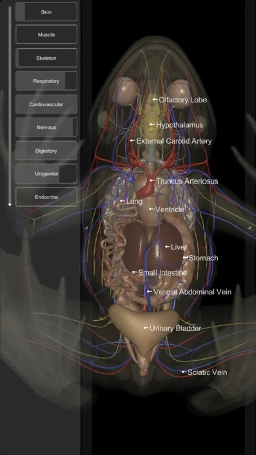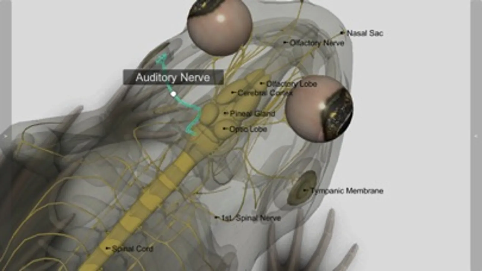 It is an interactive model of an American bullfrog (Rana catesbeiana) that allows for the animal internal systems to be viewed and manipulated layer by layer or simultaneously with other layers, at various zoom levels. Individual anatomical structures can be highlighted and display a caption, or they can be removed to permit viewing of deeper structures.