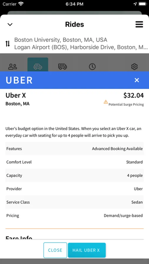 - Find specialty rides for unique circumstances such as rideshares catered towards children, rides that allow pets, shared rides, etc.