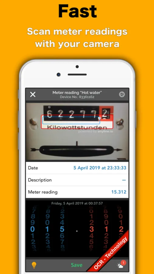 > Meter readings with the camera recognize (OCR)
