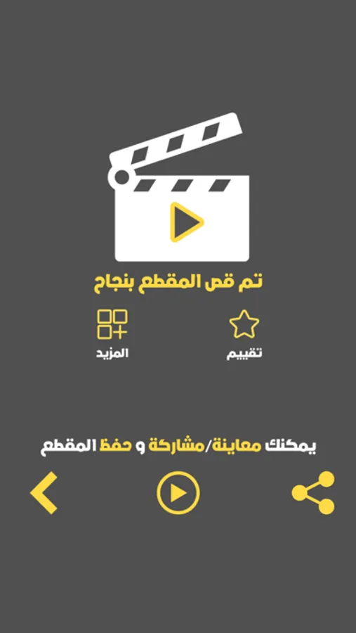 يمكنك بعد ذلك حفظ المقطع في الاستوديو او البوم الصور او مشاركة الفيديو او المقطع الجديد مواقع التواصل الاجتماعي و اليوتيوب ، ما عليك الا الضغط غلى زر رمز المشاركة و من ثم اختيار منصة المشاركة.